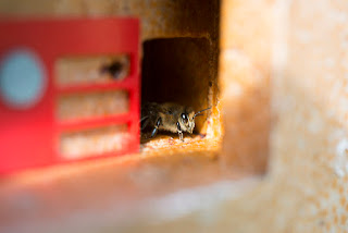 Slutligen var det dags att utfordra samhällena med foder för vintern. På bilden nedan har jag just tagit de tomma foderhinkarna från kuporna.
